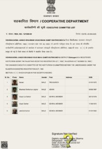 प्रार्थीगण रजिस्टर्ड संस्था विश्वकर्मा जांगिड ब्राह्मण विकास महासमिति मातृकुण्डिया तहसील राशमी जिला चित्तौडगढ प्रधान कार्यालय चित्तौडगढ होकर संचालित है तथा उक्त संस्था रजिस्टर्ड संस्था होकर रजिस्ट्रेशन कमांक 12/1968-69 होकर संचालित है। जिसके वर्तमान अध्यक्ष अम्बालाल पिता मुलचंद जाति सुथार उम्र वयस्क निवासी शम्भूपुरा पुलिस थाना शम्भूपुरा तहसील व जिला चित्तौडगढ व सचिव भैरुलाल पिता छोगालाल जाति सुथार उम्र वयस्क निवासी भीमगढ तहसील राशमी जिला चित्तौडगढ व कोषाध्यक्ष मांगीलाल पिता गोपीलाल जाति सुथार उम्र वयस्क निवासी गिलूण्ड तहसील रेलमगरा जिला राजसमंद पदाधिकारी होकर उक्त संस्था में विधि अनुसार कार्यरत है। परन्तु मुल्जिमान ने फर्जी तरीके से संस्था में नहीं होते हुए भी अवैध रुप से कार्य करते हुए वर्तमान अध्यक्ष अम्बालाल पिता मुलचंद जाति सुथार व भैरुलाल पिता छोगालाल सुथार निवासी भीमगढ व मांगीलाल पिता गोपीलाल सुथार निवासी गिलूण्ड तहसील रेलमगरा आदि के फर्जी तरीके से कुटरचित फर्जी पद त्याग पत्र, फर्जी प्रस्ताव अवैध रुप से लिख कर उस पर इनके जाली हस्ताक्षर करके दस्तावेज त्याग पत्र कार्यकारीणी को तैयार किया है तथा उसको असल में उपयोग में लेते हुए नाम परिवर्तन कार्यकार्यरिणी में करने हेतु रजिस्ट्रार महोदय संस्थाए एवं सहकारी समितिया चित्तौडगढ में प्रस्तुत कर दिया है, जिस हेतु रजिस्ट्रार महोदय द्वारा तलब करने पर एवं सत्यता की जांच के संबंध में बुलाने पर उक्त घटना के बारे में प्रार्थीगणों को दिनांक 26.02.2026 को ज्ञात हुआ है।